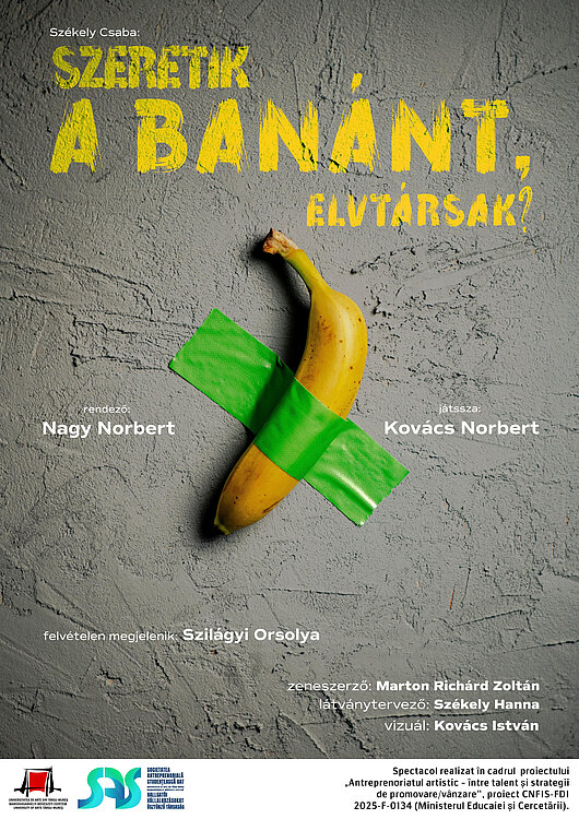 Societatea Antreprenorială Studențească din cadrul Universității de Arte din Târgu-Mureș și Teatrul Figura Studio din Gheorgheni vă invită la spectacolul Vă plac bananele, tovarăși?, un one-man show despre putere, frică și supraviețuire într-un sistem absurd.