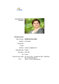Curriculum vitae Europass Informaţii personale Nume / Prenume CIOBOTARU ANCA DOINA Adresă(e) Iași, România Telefon(oane) Fax(uri) E-mail(uri) ciobotaru_anca@yahoo.com Naţionalitate(-tăţi) Română…