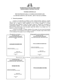 UNIVERSITATEA DE ARTE DIN TÂRGU–MUREȘ MAROSVÁSÁRHELYI MŰVÉSZETI EGYETEM NORME MINIMALE PRIVIND PREZENTAREA LUCRĂRILOR DE DISERTAȚIE LA DEPARTAMENTUL DE TEATRU, ARTE VIZUALE ȘI MEDIA 1. Forma de…