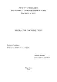 MINISTRY OF EDUCATION THE UNIVERSITY OF ARTS FROM TÂRGU MUREȘ DOCTORAL SCHOOL ABSTRACT OF DOCTORAL THESIS Doctorate Coordinator: Prof. univ. dr. habil. Sorin-Ion CRIȘAN Doctoral candidate:…