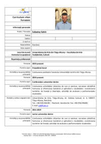 ~ Curriculum vitae Europass Informaţii personale Nume / Prenume Sabadoş Sabin Adrese Telefon E-mail-uri Naţionalitate Română Data naşterii Locul de muncă Universitatea de Arte din Târgu-Mureș –…
