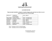 UNIVERSITATEA DE ARTE DIN TÂRGU–MUREŞ MAROSVÁSÁRHELYI MŰVÉSZETI EGYETEM ALEGERI 2023/2024 Reprezentanții studenților cu drept de vot pentru alegerea prin votul universal, direct și secret pentru…