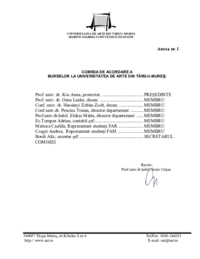 UNIVERSITATEA DE ARTE DIN TÂRGU–MUREŞ MAROSVÁSÁRHELYI MŰVÉSZETI EGYETEM Anexa nr.1 COMISIA DE ACORDARE A BURSELOR LA UNIVERSITATEA DE ARTE DIN TÂRGU-MUREȘ: Prof. univ. dr. Kós Anna, prorector;…