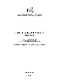 UNIVERSITATEA DE ARTE DIN TÂRGU–MUREȘ MAROSVÁSÁRHELYI MŰVÉSZETI EGYETEM RAPORT DE ACTIVITATE 2011-2016 ŞCOALA DOCTORALĂ TEATRU ŞI ARTELE SPECTACOLULUI UNIVERSITATEA DE ARTE DIN TÂRGU–MUREȘ …