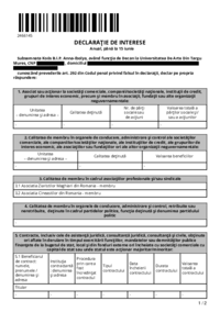 2344466 DECLARAŢIE DE INTERESE Anual, până la 15 iunie Subsemnatul Balási A. András, având funcţia de Prorector la Universitatea De Arte Din Targu Mures, CNP ************* , domiciliul ***********,…