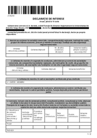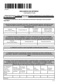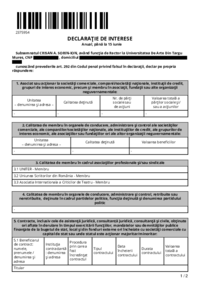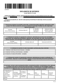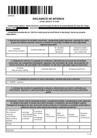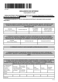 2342965 DECLARAŢIE DE INTERESE Anual, până la 15 iunie Subsemnatul Penciuc T. Traian, având funcţia de Director Departament la Universitatea De Arte Din Targu Mures, CNP ************* , domiciliul…