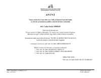 UNIVERSITATEA DE ARTE DIN TÂRGU MUREȘ MAROSVÁSÁRHELYI MŰVÉSZETI EGYETEM ANUNȚ Vineri, în data de 23 mai 2025, ora 17:00, în Foaierul Teatrului Studio va avea loc presusținerea publică a tezei de…