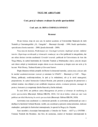 TEZĂ DE ABILITARE Cost, preț și valoare: evaluare în artele spectacolului Conf. univ. dr. IRINA-CORNELIA IONESCU Rezumat M-am format, timp de zece ani, în mediul academic al Universităţii Naționale…