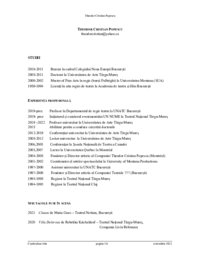 Curriculum Vitae Nume: Michailov Prenume: Mihaela STUDII Doctor în domeniul Teatru, UNATC „I.L.Caragiale” București, 2013 Doctorand UNATC „I.L.Caragiale” București, 2008-2013 Master Antropologie,…