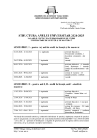 UNIVERSITATEA DE ARTE DIN TÂRGU–MUREȘ MAROSVÁSÁRHELYI MŰVÉSZETI EGYETEM Aprobat de către Senatul Universității în data de 17.09.2024 Rector, Prof.univ.dr.habil. Sorin Crișan STRUCTURA ANULUI…
