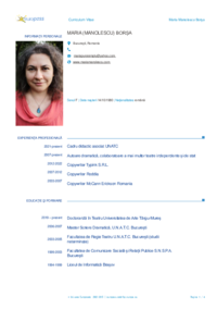 Curriculum Vitae INFORMAŢII PERSONALE Maria Manolescu Borșa MARIA (MANOLESCU) BORȘA București, Romania mariapursisimplu@yahoo.com www.mariamanolescu.com Sexul F | Data naşterii 14/10/1980 |…