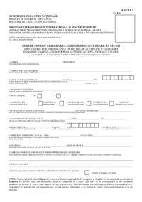 ANEXA 2 Nr. Ref…………….. MINISTERUL EDUCATIEI NAȚIONALE MINISTRY OF NATIONAL EDUCATION MINISTÈRE DE L’ÉDUCATION NATIONALE DIRECȚIA GENERALĂ RELAȚII INTERNAȚIONALE ȘI AFACERI EUROPENE GENERALDIRECTION…