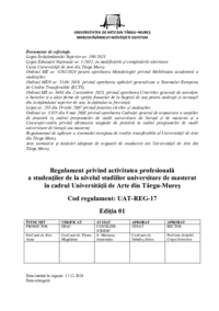 UNIVERSITATEA DE ARTE DIN TÂRGU–MUREȘ MAROSVÁSÁRHELYI MŰVÉSZETI EGYETEM Documente de referinţă: Carta Universităţii de Arte din Târgu Mureş; Regulamentul privind activitatea profesională a…