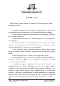 UNIVERSITATEA DE ARTE DIN TÂRGU–MUREȘ MAROSVÁSÁRHELYI MŰVÉSZETI EGYETEM Dosarul de concurs Pentru înscrierea la concurs candidaţii vor prezenta un dosar de concurs care va conţine următoarele…