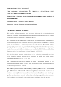 Raportare finală (CNFIS-FDI-2022-0145) Titlul proiectului: DEZVOLTAREA ÎN CARIERĂ A STUDENȚILOR PRIN ACTIVITĂȚI INOVATIVE DE MENTORAT Domeniul vizat 7. Corelarea ofertei educaţionale cu cererea…