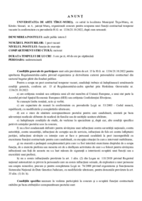 ANUNȚ UNIVERSITATEA DE ARTE TÎRGU-MUREȘ, cu sediul în localitatea Municipiul Tîrgu-Mureș, str. Köteles Sámuel, nr. 6, judeţul Mureș, organizează concurs pentru ocuparea unei funcții contractual…