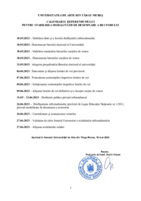 UNIVERSITATEA DE ARTE DIN TÂRGU-MUREȘ CALENDARUL REFERENDUMULUI PENTRU STABILIREA MODALITĂȚII DE DESEMNARE A RECTORULUI 10.05.2023 – Stabilirea datei și a locului desfășurării referendumului…