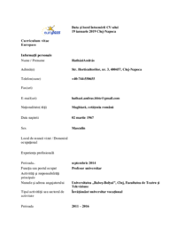 Data şi locul întocmirii CV-ului 19 ianuarie 2019 Cluj-Napoca Curriculum vitae Europass Informaţii personale Nume / Prenume HatháziAndrás Adresă(e) Str. Horticultorilor, nr. 3, 400457, Cluj-Napoca…