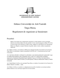 Editura Universităţii de Artă Teatrală Târgu-Mureş Regulament de organizare şi funcţionare Preambul: - - Editura Universitatii este un departament sinestatator in cadrul insitutiei avand ca…