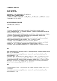 CURRICULUM VITAE NUME: NELEGA PRENUME:ALINA Data nașterii: 1960, 18 decembrie, Târgu-Mureș Profesia: autor dramatic, scriitoare Locul de muncă: Universitatea de Arte Tg. Mureș, Facultatea de Arte în…