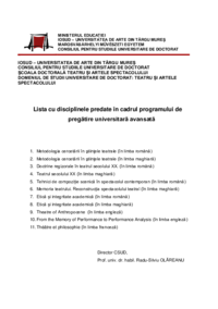 MINISTERUL EDUCAȚIEI IOSUD – UNIVERSITATEA DE ARTE DIN TÂRGU MUREȘ MAROSVÁSÁRHELYI MŰVÉSZETI EGYETEM CONSILIUL PENTRU STUDIILE UNIVERSITARE DE DOCTORAT IOSUD – UNIVERSITATEA DE ARTE DIN TÂRGU MUREȘ…