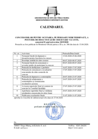 UNIVERSITATEA DE ARTE DIN TÂRGU–MUREȘ MAROSVÁSÁRHELYI MŰVÉSZETI EGYETEM CALENDARUL CONCURSURILOR PENTRU OCUPAREA, PE PERIOADĂ NEDETERMINATĂ, A POSTURILOR DIDACTICE ȘI DE CERCETARE VACANTE, semestrul…