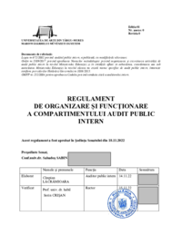 Ediția 01 Nr. anexe: 0 Revizia 0 UNIVERSITATEA DE ARTE DIN TÂRGU–MUREȘ MAROSVÁSÁRHELYI MŰVÉSZETI EGYETEM Documente de referință: Legea nr.672/2002 privind auditul public intern, republicată, cu…