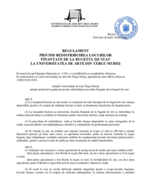 UNIVERSITATEA DE ARTE DIN TÂRGU–MUREŞ MAROSVÁSÁRHELYI MŰVÉSZETI EGYETEM Rector, Prof.univ.dr.habil. Sorin Crișan REGULAMENT PRIVIND REDISTRIBUIREA LOCURILOR FINANȚATE DE LA BUGETUL DE STAT LA…