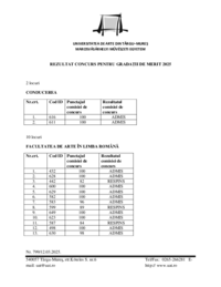 UNIVERSITATEA DE ARTE DIN TÂRGU–MUREȘ MAROSVÁSÁRHELYI MŰVÉSZETI EGYETEM REZULTAT CONCURS PENTRU GRADAȚII DE MERIT 2025 2 locuri CONDUCEREA Nr.crt. 1. 2. Cod ID Punctajul comisiei de concurs 616…