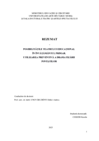 MINISTERUL EDUCAȚIEI ȘI CERCETĂRII UNIVERSITATEA DE ARTE DIN TÂRGU MUREŞ ȘCOALA DOCTORALĂ TEATRU ȘI ARTELE SPECTACOLULUI REZUMAT POSIBILITĂȚILE TEATRULUI EDUCAȚIONAL ÎN ÎNVĂȚĂMÂNTUL PRIMAR.…