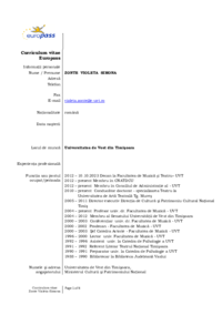 Curriculum vitae Europass Informaţii personale Nume / Prenume ZONTE VIOLETA SIMONA Adresă Telefon Fax E-mail Naţionalitate violeta.zonte@e-uvt.ro română Data naşterii Locul de muncă …