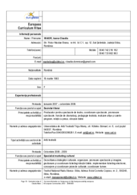Europass Curriculum Vitae Informaţii personale Nume / Prenume MAIOR, Ioana-Claudia Adresa(e) Str. Pictor Nicolae Brana, nr.44, bl. C1, ap. 12, Sat Şelimbăr, Judeţul Sibiu, România Mobile: 0040 742…