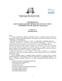 UNIVERSITATEA DE ARTE DIN TÂRGU–MUREŞ MAROSVÁSÁRHELYI MŰVÉSZETI EGYETEM METODOLOGIA pentru ocuparea posturilor didactice şi de cercetare vacante la UNIVERSITATEA DE ARTE din Târgu-Mureș CAPITOLUL I…