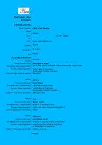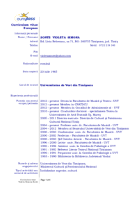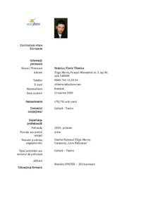 Curriculum vitae Europass Informaţii personale Nume / Prenume Adresă Vasiniuc, Florin Tiberius Tîrgu Mureş, Pasajul Mimozelor nr. 3, Ap.44, cod: 540008 Telefon E-mail Naţionalitate Data naşterii…