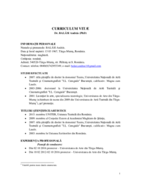 CURRICULUM VITÆ Dr. BALÁSI András (PhD) INFORMAŢII PERSONALE Numele şi prenumele: BALÁSI András. Data şi locul naşterii: 13 03 1967, Târgu-Mureş, România. Naţionalitatea: maghiară. Cetăţenia:…