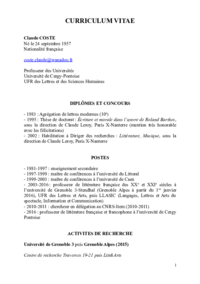 CURRICULUM VITAE Claude COSTE Né le 24 septembre 1957 Nationalité française coste.claude@wanadoo.fr Professeur des Universités Université de Cergy-Pontoise UFR des Lettres et des Sciences Humaines …