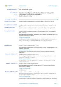 Curriculum Vitae INFORMAŢII PERSONALE LOCUL DE MUNCA POZIŢIA Bartha Katalin Ágnes BARTHA Katalin Ágnes Departamentul Maghiar de Teatru, Facultatea de Teatru și Film, Universitatea Babeș-Bolyai…
