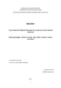 MINISTERUL EDUCAȚIEI ȘI CERCETĂRII UNIVERSITATEA DE ARTE DIN TÂRGU MUREŞ ȘCOALA DOCTORALĂ TEATRU ȘI ARTELE SPECTACOLULUI REZUMAT Forme teatrale în Sighetu Marmaţiei. Pe urmele unei culturi teatrale…