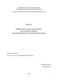 MINISTERUL EDUCAȚIEI ȘI CERCETĂRII UNIVERSITATEA DE ARTE DIN TÂRGU MUREŞ ȘCOALA DOCTORALĂ TEATRU ȘI ARTELE SPECTACOLULUI REZUMAT POSIBILITĂȚILE TEATRULUI EDUCAȚIONAL ÎN ÎNVĂȚĂMÂNTUL PRIMAR.…