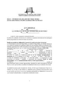 UNIVERSITATEA DE ARTE DIN TÂRGU MUREȘ MAROSVÁSÁRHELYI MŰVÉSZETI EGYETEM IOSUD – UNIVERSITATEA DE ARTE DIN TÂRGU MUREȘ ȘCOALA DOCTORALĂ TEATRU ȘI ARTELE SPECTACOLULUI ACT ADIŢIONAL nr.____ din…