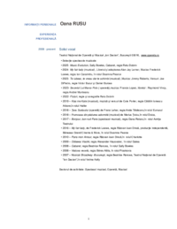 INFORMAŢII PERSONALE Oana RUSU EXPERIENŢA PROFESIONALĂ 2008 - prezent Solist vocal Teatrul Național de Operetă și Musical „Ion Dacian”, București 03016, www.opereta.ro • Selecție spectacole…