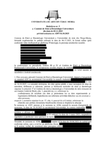 UNIVERSITATEA DE ARTE DIN TÂRGU–MUREȘ Hotărârea nr. 5 a Comisiei de Etică și Deontologie Universitară din data de 05.11.2025 privind sesizarea nr. 4207/16.10.2025 Comisia de Etică și Deontologie…